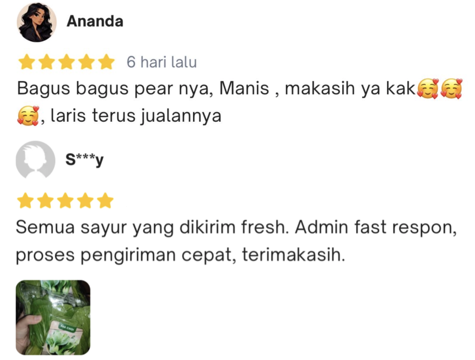 produk yang 100% segar dan penuh nutrisi kepada pelanggan kami.